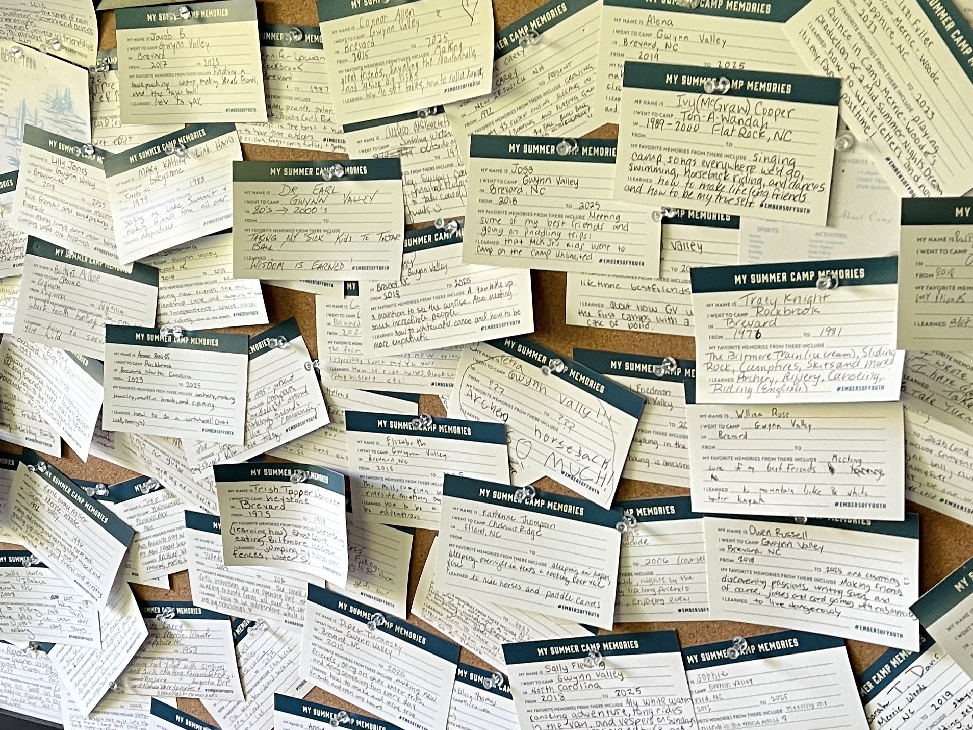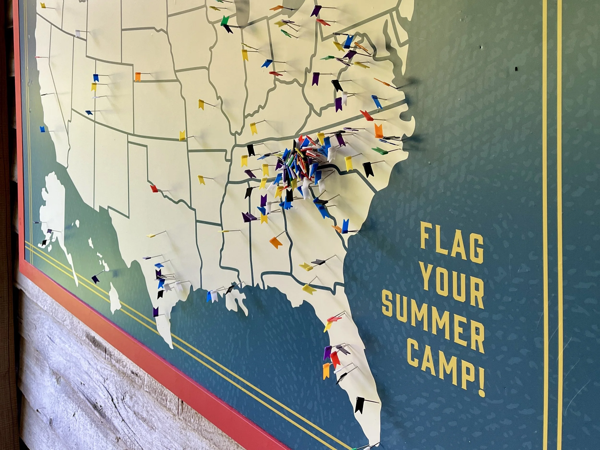 Visitors to the museum exhibit, “Campfires & the Embers of Youth” were asked to put a pin in the map where they spent their own camping days. Over the course of five months, visitors flagged their summer camps on a map of the United States. As the weeks and months passed, more and more pins were placed, showing the wider story of the American camping movement across geography and generations.